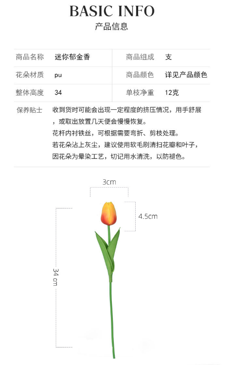 仿真花 单支PU迷你郁金香